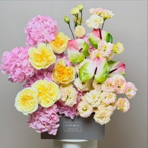 Immerse yourself in the delicate charm of Dawn Serenade, a luxury flower arrangement that blends soft pink hydrangeas, creamy lisianthus, and golden roses with rare anthuriums. Designed for discerning clients seeking elegance and emotional resonance, this bouquet is ideal for weddings, upscale events, and heartfelt gifting. Each stem is hand-selected and artistically arranged by our master florists in Abu Dhabi, ensuring premium quality and visual poetry. Enjoy same-day delivery in Abu Dhabi and next-day delivery across the UAE — including Dubai, Sharjah, and Al Ain. Whether you're celebrating love, sending gratitude, or elevating your home decor, Blush Reverie is a timeless expression of beauty.