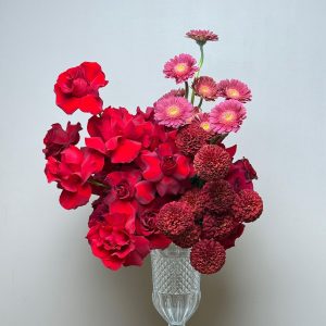A bold and romantic statement, Amour Royale features velvety red roses, deep chrysanthemums, and playful pink gerberas in a crystal-cut glass vase. Perfect for gifting, events, or luxurious interiors. Available for online flower delivery in UAE with same-day service in Abu Dhabi and next-day delivery to Dubai, Sharjah, and Al Ain.