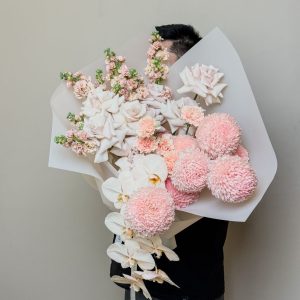 A breathtaking symphony of pastel elegance, Atelier Blush features premium chrysanthemums, roses, orchids, and seasonal blooms in a cascading design. Wrapped in luxurious white paper, this bouquet is ideal for weddings, events, and refined gifting. Available for same-day delivery in Abu Dhabi and next-day across the UAE — including Dubai, Sharjah, and Al Ain. Discover artistic floral design at its finest.