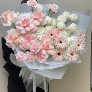 Luxury pastel bouquet by Espoir — premium roses, hydrangeas, pom-poms & gerberas arranged in an oversized couture style. Perfect for birthdays, anniversaries, and grand gestures. Same-day delivery in Abu Dhabi.