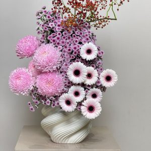 Elevate any space with our Blossom Ballet Vase Arrangement — an artistic blend of soft pink chrysanthemums, white gerberas, and red berries. Hand-crafted by Espoir’s expert florists, this arrangement radiates modern elegance and refined charm. Perfect for weddings, home décor, or thoughtful gifting. Enjoy same-day flower delivery in Abu Dhabi and next-day delivery across the UAE, including Dubai, Sharjah, and Al Ain. Order now and bring timeless beauty to every occasion.