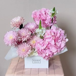 Elevate your space with Celestial Grace, a symphony of pastel chrysanthemums and hydrangeas in Espoir's signature box. Designed for refined tastes, this luxury flower arrangement is ideal for weddings, events, and elegant home decor. Experience premium quality and artistic floral design with same-day delivery in Abu Dhabi and next-day across Dubai, Sharjah, and Al Ain. Buy flowers online with ease and sophistication.