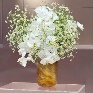 Redefining minimalism, Ethereal Pearl is a masterclass in luxury floral design. Cascading White Phalaenopsis Orchids meet the playful texture of wild daisies, creating a "cloud" effect that breathes life into any space. Housed in a hand-blown amber glass vase, it is an ideal choice for wedding decor or an upscale corporate gift. We offer luxury flower arrangements that serve as living art. With our trusted online flower delivery UAE, you can enjoy same‑day delivery in Abu Dhabi and next‑day delivery across Dubai, Sharjah, and Al Ain.