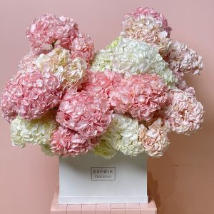Floral Muse is a refined floral box featuring lush hydrangeas in soft pink, ivory, and pale green tones. Presented in our signature Espoir signature box, this arrangement is perfect for upscale home décor, bridal showers, or heartfelt gifting. Experience online flower delivery UAE with same-day service in Abu Dhabi and next-day delivery in Dubai, Sharjah, and Al Ain. Buy flowers online with premium quality and timeless style.