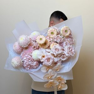 The Petal Serenade Bouquet is a breathtaking expression of luxury floristry, crafted for unforgettable moments. This voluminous arrangement features blush roses, pastel chrysanthemums, soft gerbera daisies, and cascading orchids creating a dreamy, cloud-like silhouette that exudes sophistication. Perfect for weddings, engagements, anniversaries, and luxury gifting, this bouquet is designed to impress. Customers searching for luxury flower arrangements, online flower delivery UAE, or premium gifting options will find this bouquet unmatched in beauty and craftsmanship. Espoir offers same-day delivery in Abu Dhabi and next-day across the UAE including Dubai, Sharjah, and Al Ain, making it effortless to buy flowers online for any grand celebration.