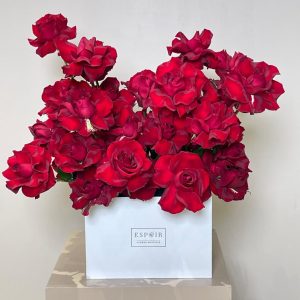 Make a statement with Rosé Drift, a dramatic box of premium red roses in full bloom. Presented in Espoir's signature sleek white box, this luxury flower arrangement is ideal for romantic gestures, grand events, or high-end home decor. Enjoy same-day delivery in Abu Dhabi and next-day across Dubai, Sharjah, and Al Ain. Buy flowers online and indulge in the finest floral artistry in the UAE.