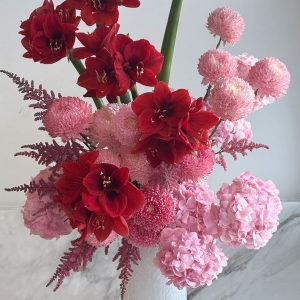 Introducing Scarlet Affection — a refined floral masterpiece designed for those who appreciate luxury flower arrangements with modern artistic flair. Featuring lush red Amaryllis, paired beautifully with soft blush hydrangeas, chrysanthemums, and textured accents, this arrangement captures a balance of passion and elegance. Perfect as a statement centerpiece for your home, a sophisticated gift, or a stunning arrangement for weddings and high-end events. Crafted by our expert floral designers using only premium, fresh blooms, this vase arrangement showcases texture, depth, and harmonious color contrast — a true celebration of elevated floral artistry. Enjoy online flower delivery UAE with same-day delivery in Abu Dhabi and next-day across the UAE — including Dubai, Sharjah, and Al Ain. Whether you’re celebrating love, an occasion, or simply elevating your space, this design makes every moment feel unforgettable.