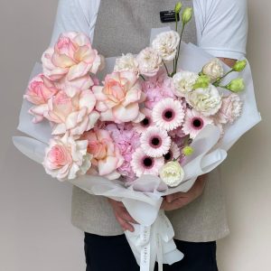 A poetic blend of soft pink roses, pale lisianthus, and gerbera daisies, Serene Haze is a luxury flower arrangement designed to enchant. Wrapped in translucent white paper and tied with our signature Espoir ribbon, this bouquet is a celebration of refined beauty and artistic floral design. Perfect for weddings, anniversaries, or upscale gifting, it’s available for same-day delivery in Abu Dhabi and next-day across Dubai, Sharjah, and Al Ain. Buy flowers online with confidence—our premium blooms and bespoke presentation ensure every delivery is unforgettable.