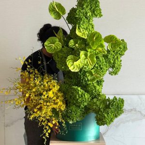 Elevate your space with Tropique Élégance, a bold and architectural floral arrangement featuring vibrant green Anthuriums, hydrangeas and cascading yellow Oncidium orchids. Designed for discerning clients who appreciate sculptural beauty and botanical artistry, this piece is housed in our signature Espoir box—an emblem of luxury and refinement. Perfect for upscale events, corporate gifting, or statement home decor, this arrangement is a celebration of form, texture, and color. Available for same-day delivery in Abu Dhabi and next-day delivery across the UAE, including Dubai, Sharjah, and Al Ain.