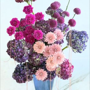 Immerse yourself in the artistry of Velour Bloom — a luxury flower arrangement that blends the drama of purple hydrangeas, magenta carnations, and whimsical pink Chrysanthemums with the sculptural elegance of alliums and cascading ribbons. Designed for discerning clients seeking premium floral design, this piece is ideal for upscale gifting, home styling, or event décor. Crafted with precision and flair, Velour Bloom is available for same-day delivery in Abu Dhabi and next-day across the UAE — including Dubai, Sharjah, and Al Ain. Whether you're celebrating a milestone or elevating your interiors, this arrangement speaks the language of luxury.
