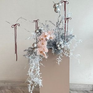 Elevate your seasonal décor with Velvet Frost — a refined arrangement of snow-kissed foliage adorned with soft velvet bows. Perfect for winter weddings, festive displays, or elegant home styling. This luxury floral accent is available for same-day delivery in Abu Dhabi and next-day across Dubai, Sharjah, and Al Ain. Discover premium artistry and seamless online flower delivery UAE.