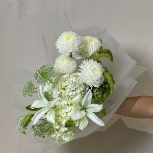 White Veil is a refined bouquet of white lilies, hydrangeas, chrysanthemums, and lush green foliage—wrapped in translucent white paper for a soft, ethereal finish. This arrangement speaks to purity and sophistication, perfect for weddings, heartfelt gifts, or serene home styling. Designed for high-end clients seeking luxury flower arrangements with seamless online flower delivery UAE, this bouquet is available for same-day delivery in Abu Dhabi and next-day delivery across Dubai, Sharjah, and Al Ain. Each stem is selected for freshness and visual harmony, ensuring a lasting impression.