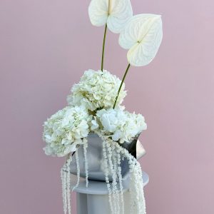 Celestial Sculpture a striking Eid flower centerpiece designed for those who appreciate sculptural beauty and refined luxury. Featuring tall white anthuriums, cloud‑like hydrangeas, and cascading Amaranthus, this arrangement creates a breathtaking statement for homes, events, and Eid gatherings. Crafted with premium blooms and meticulous artistry, it’s ideal for high‑end décor. Enjoy seamless online flower delivery UAE, with same‑day delivery in Abu Dhabi and next‑day across Dubai, Sharjah, and Al Ain. The perfect choice when you want to buy flowers online with sophistication.