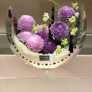 The Midnight Crescent, blends luxury craftsmanship with vibrant floral artistry. Set in a hammered crescent‑shaped metallic vase, this arrangement features rich purple and pink chrysanthemums accented with delicate seasonal blooms. A striking centerpiece for Ramadan majlis, gifting, and elegant home décor. Enjoy seamless online flower delivery UAE, including same‑day delivery in Abu Dhabi and next‑day across Dubai, Sharjah, and Al Ain. A premium floral statement designed for those who appreciate refined beauty.